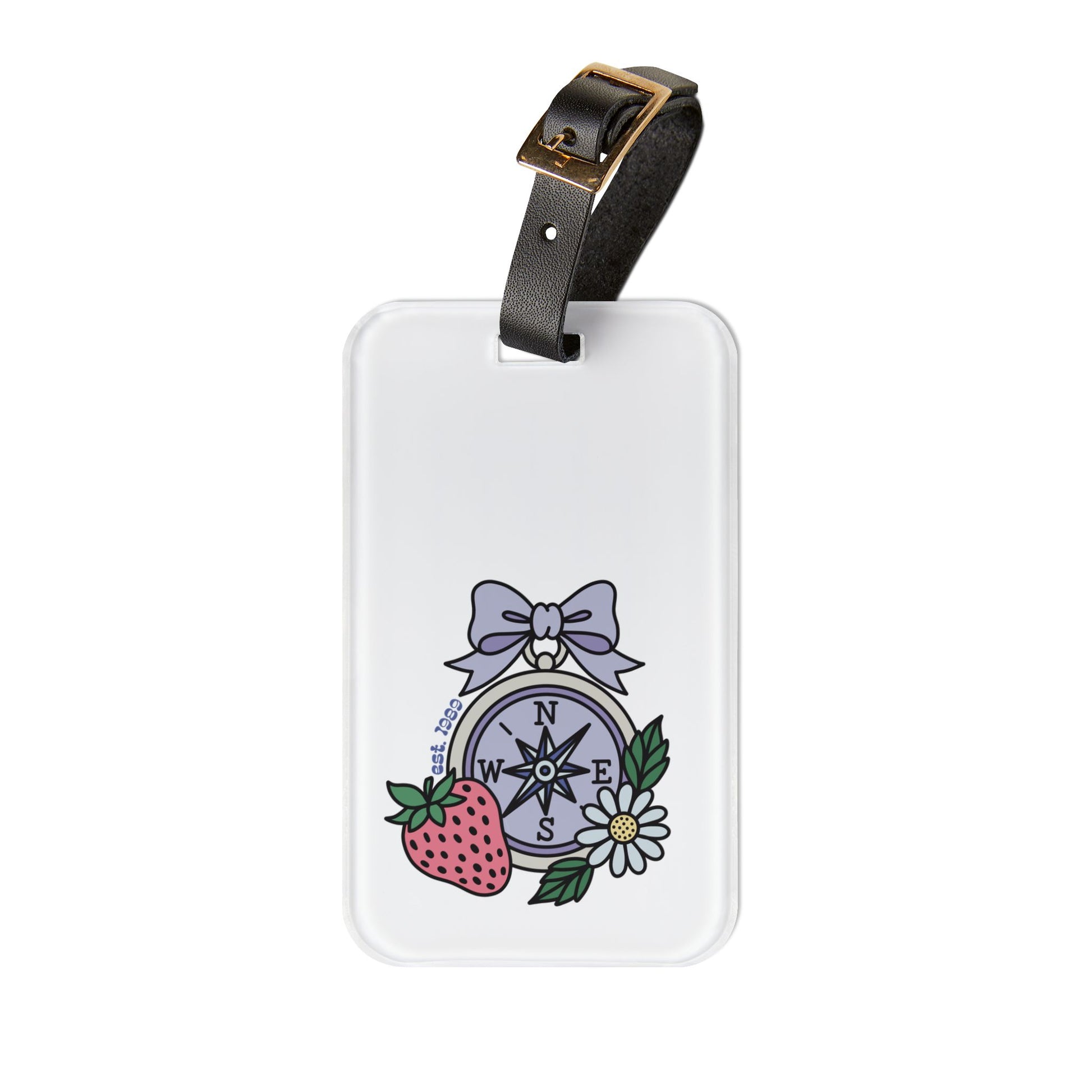 Folklore Fields Luggage Tag – Compass & Floral Design, Durable Acrylic Travel Accessory